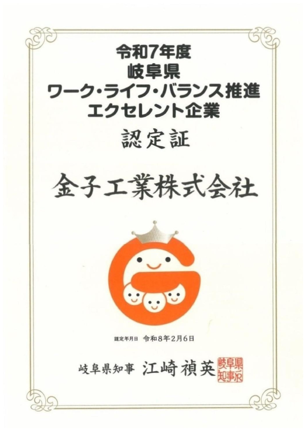 toggle navigation 「つなげるを造る」への想い 会社案内 会社概要 金子工業の歴史 社長メッセージ 安全衛生の取り組み 「つなげるを造る」のために 工事技術の追求と人材育成 インフラの守り手 顧客・施工パートナーと未来を共有 これからの街づくり 業務案内 土木工事 建築工事 不動産事業 活動報告 お知らせ 社員紹介 採用情報 書式ダウンロード お問い合わせ 個人情報について サイトのご利用について HOME> お知らせ一覧> お知らせ詳細 令和7年度 岐阜県ワーク・ライフ・バランス推進エクセレント企業 認定 このたび当社は、『令和7年度 岐阜県ワーク・ライフ・バランス推進エクセレント企業』に認定されました。 仕事と家庭・プライベートの両立を支援する取り組みや、働きやすい職場づくりが評価されたものです。 今後も、社員がいきいきと働ける会社を目指し、より良い職場環境づくりに努めてまいります。 お知らせ一覧に戻る>> ページの先頭へ戻る 採用情報 お問い合わせ 活動報告