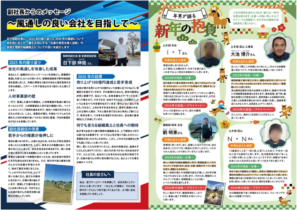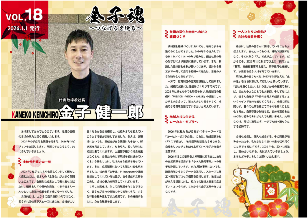 2026年1月の社内報『金子魂~つなげるを造る~』が完成しました。